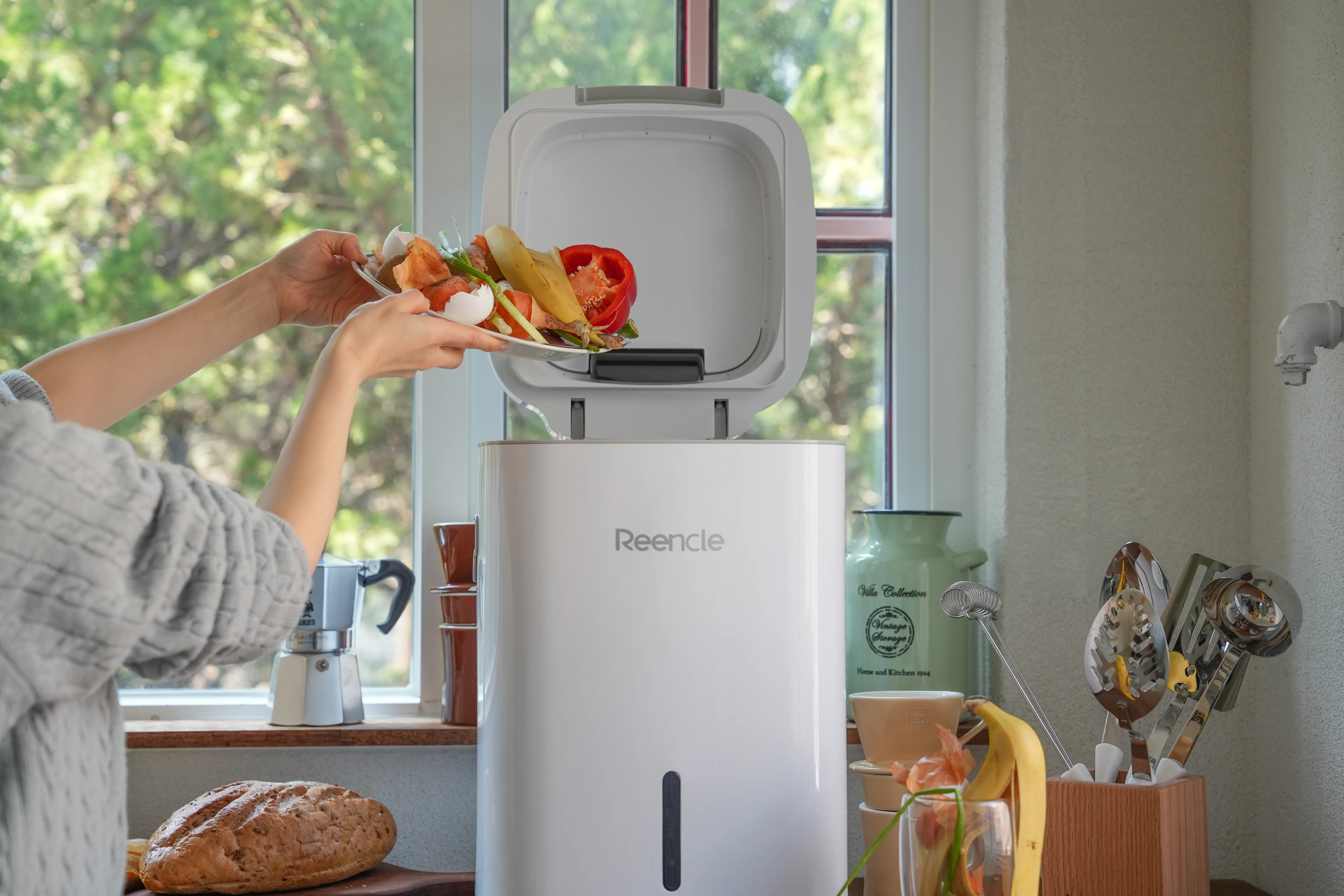 Reencle oferă două modele de compostere pentru uz casnic: Prime și Gravity, ambele concepute pentru a transforma deșeurile alimentare în compost în doar 24 de ore.